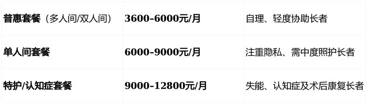 护理费按失能程度分级收取: 800–6500元/月