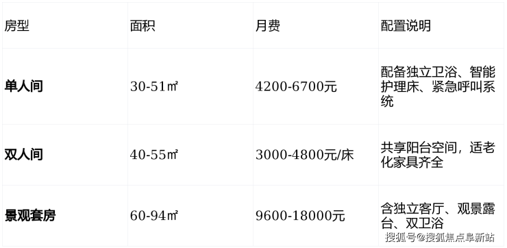 收费标准: 7500元/月起(按房型与护理等级分级定价)