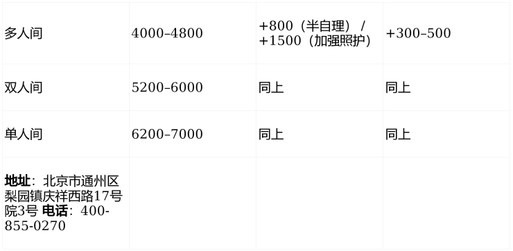 ▶ 收费价格:4000–7000元/月(以院内照护评估为准)
