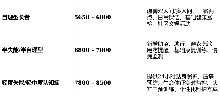 💡 政策支持:符合条件长者可享受 长期护理险报销,进一步减轻家庭负担; 夫妻同住、短期托养可享专属优惠。