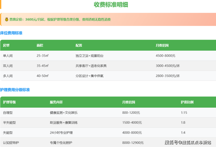 参考收费起点:3600元/月起(最终费用依据房型与护理等级确定)