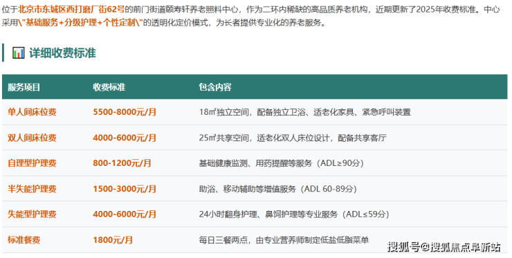 前门街道颐寿轩养老照料中心:2025年收费标准-地址电话全解析