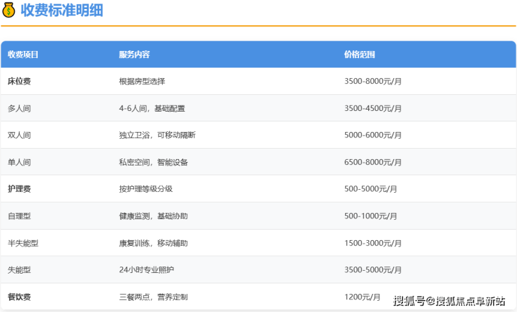 自理老人:主要为基础服务,费用相对较低