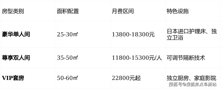 收费区间:11800元至32000元/月(根据房型和服务等级分级定价)