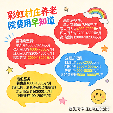 彩虹村庄采用“基础住宿费+分级护理费+增值服务”模式,月均费用4500元起,具体如下: