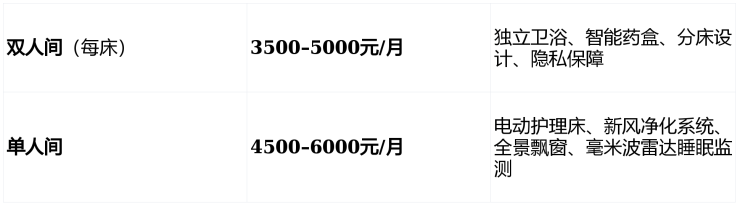 总费用区间: 4400元/月起(双人间+自理护理+餐费),最高约 13000元/月(单人间+认知症专护+餐费)。