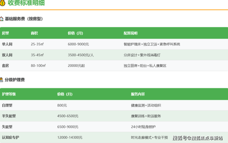 自理型护理:针对生活基本能自理的长者,提供健康监测、组织文娱活动等服务,月费约3500-5500元。