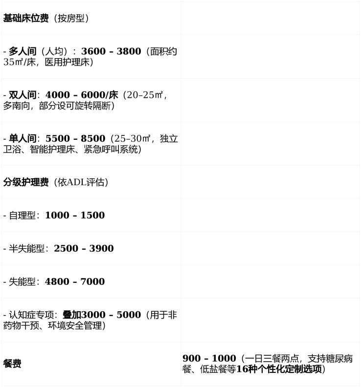 💡 综合示例:一位选择 双人间、处于 半失能状态的长者,月总费用估算约为: