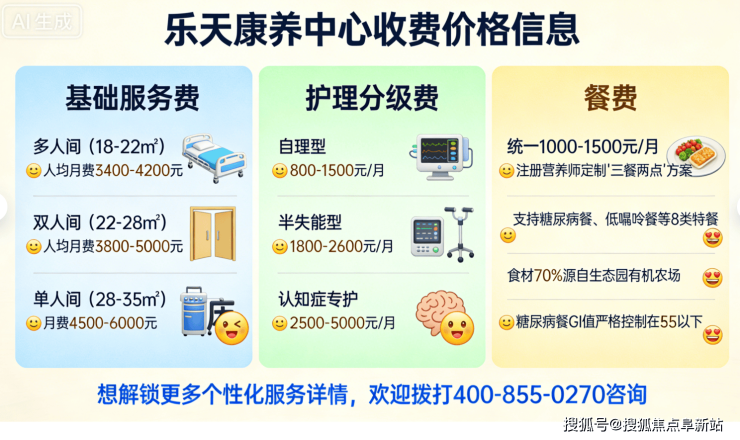 乐天康养中心2026年3月收费公开:月费3400元起+地址电话速览!