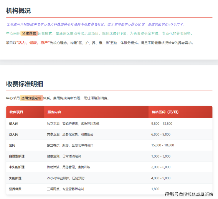 万科随园养老中心采用**“床位费+护理费+餐费”**的梯度收费模式,精准覆盖不同健康状态长者的需求: