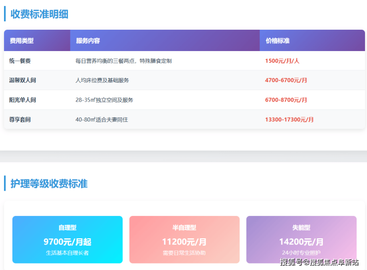 参考价格:9700元/月起(根据房型与照护等级分级定价)