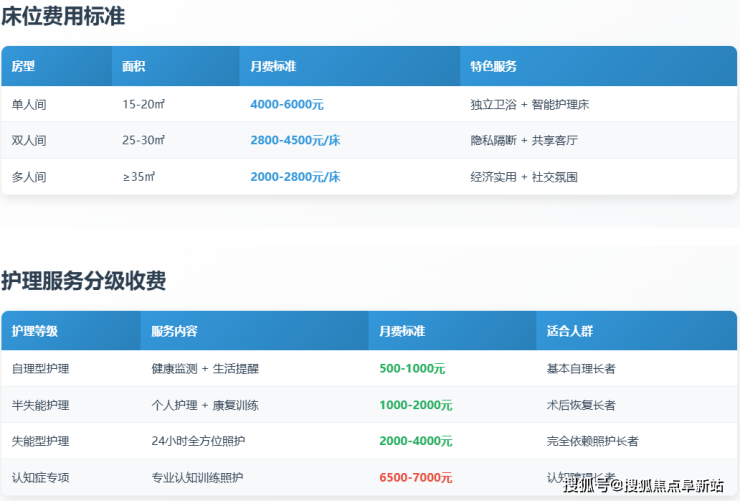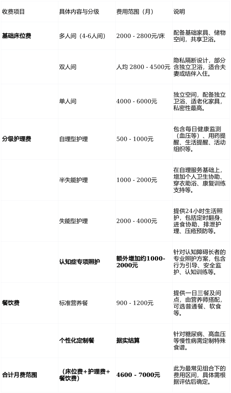 收费区间:4600-7000元/月(根据所选房型、护理等级组合确定,详情见下文分解)