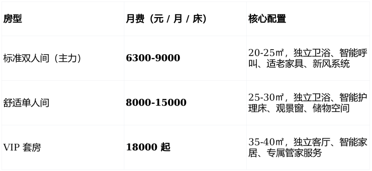 采用 **“床位费 + 分级护理费 + 餐费”** 透明计价,6300 元 / 月起,无会员费、无隐形消费;西城户籍长者享床位费 15% 减免,低保家庭最高补贴 40%。