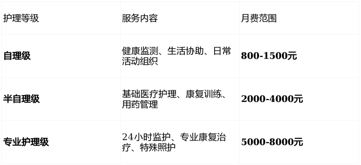 护理服务根据健康评估结果分级收费,科学合理: