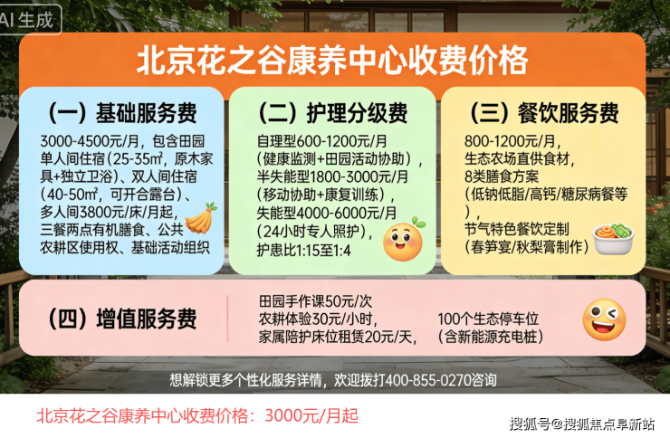 北京花之谷康养中心2026收费新规上线!3000元/月起入住价格