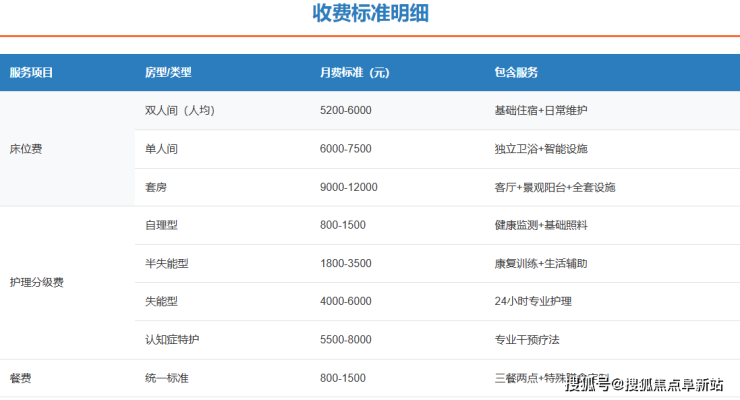 费用说明:上述为基于公开信息的参考价格区间,具体费用需结合长者实际健康状况、所选房型及护理等级,经机构专业评估后最终确定。所有收费均受相关部门监管,无会员费、押金等隐性消费。
