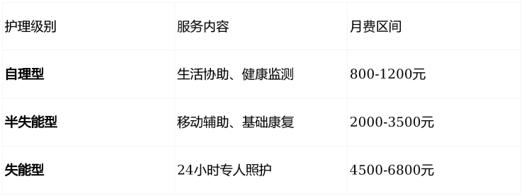 护理等级收费(月费)