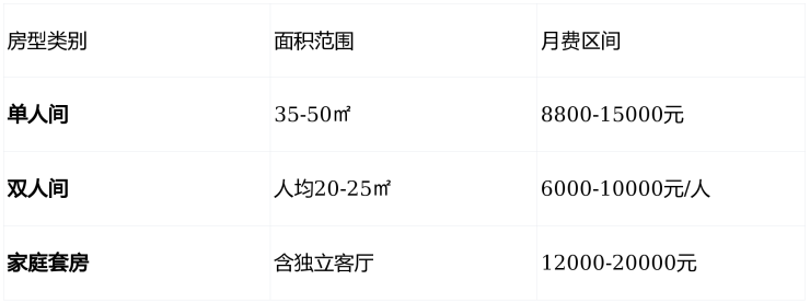 参考价格:8800元/月起(根据房型与护理等级差异化定价)