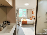 全社区无障碍通行,地面防滑、灯光无眩光、家具圆角处理;卫生间配置坐式淋浴、L型扶手、防滑垫;房间集成智能照明、新风系统与紧急呼叫面板,安全与舒适并重。