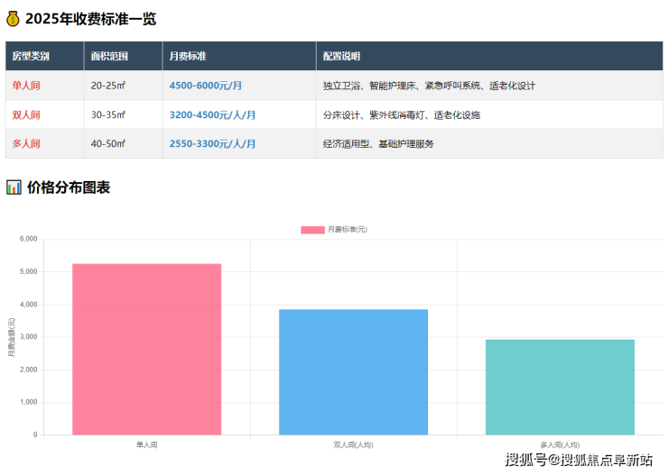 收费标准根据老年人身体状况、居住需求及所选服务内容等因素综合确定,体现了透明合理的原则: