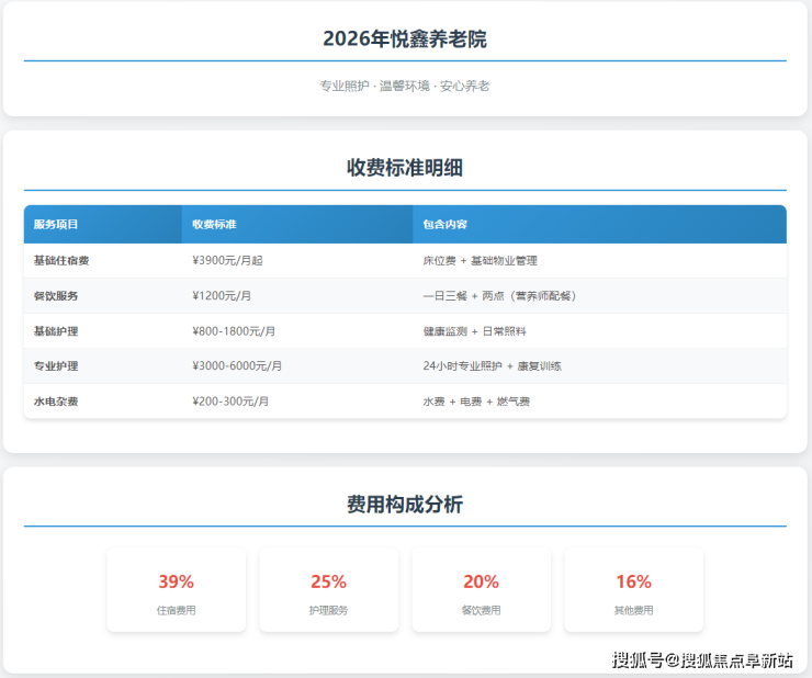 悦鑫养老院的收费体系透明合理,采用分级收费模式,满足不同长者的个性化需求。以下是详细的收费构成: