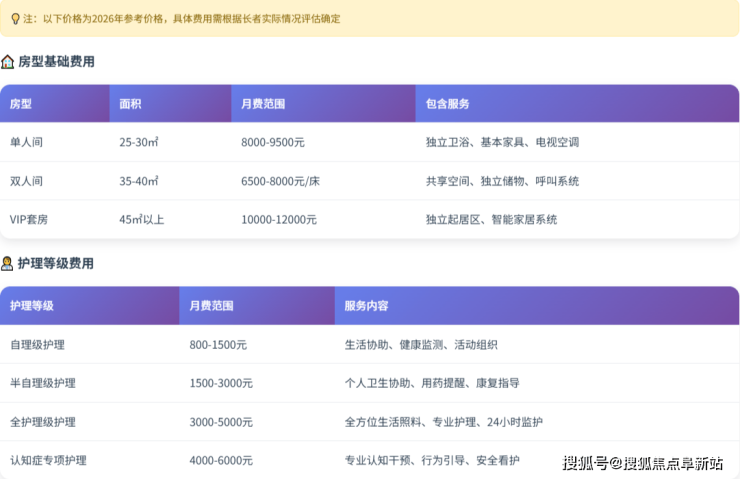 住宿费用:包含独立单人间或双人间的使用权。房间均采用无障碍适老化设计,配备基础家具、独立卫浴及智能紧急呼叫系统。