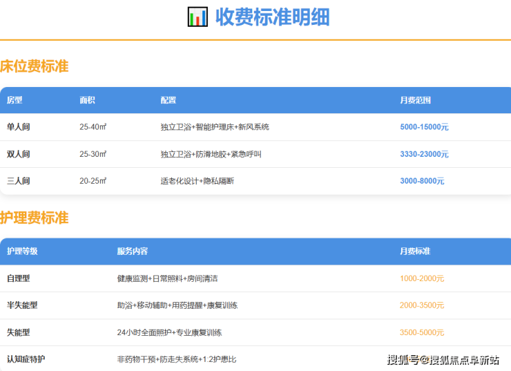 双人间(经济型):3330元 - 5500元/月。这是满足基础照护需求的性价比之选,通常包含独立卫浴、基础家具及每日三餐。