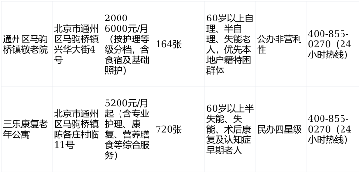 一、通州区马驹桥镇敬老院