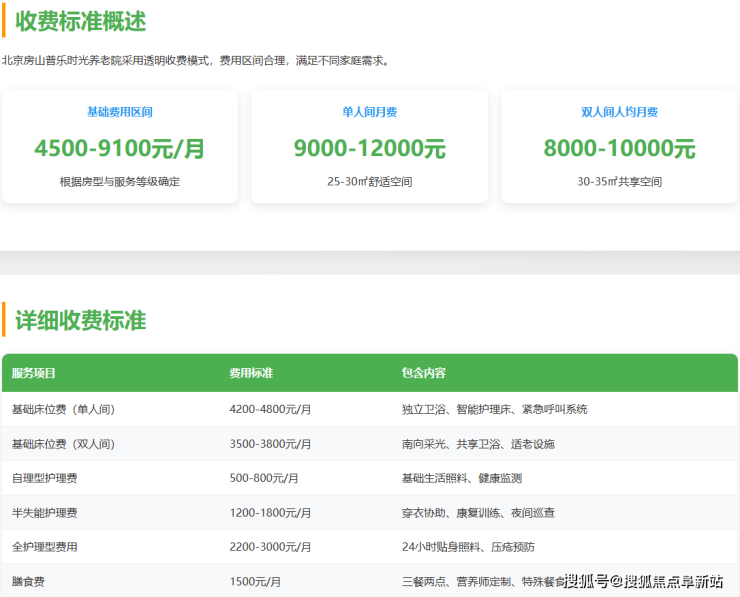 北京房山普乐时光养老院采用"基础床位费+分级护理费"复合收费模式,月均费用区间为4500-9100元,具体根据房型规格与护理等级动态调整。