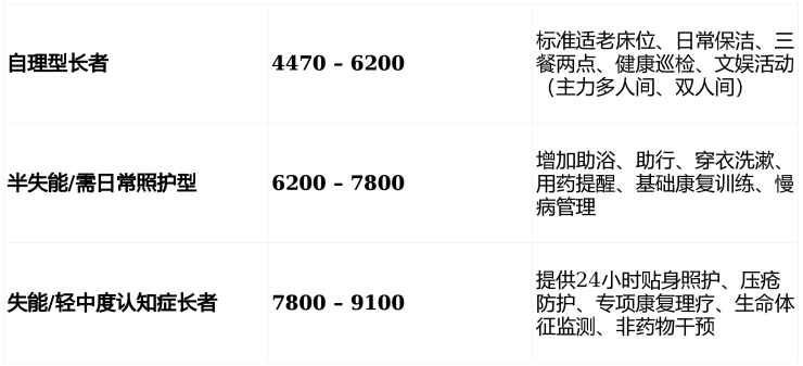 💰 收费标准:4470-9100 元 / 月(含床位费 + 分级护理费 + 餐费,按房型、护理等级浮动)