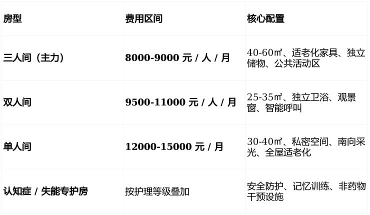 💰 收费区间:8000 元 / 月起(床位 + 护理 + 膳食,分级计价)