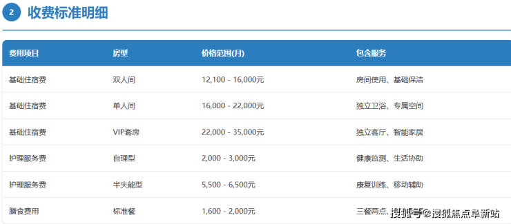 基础服务费:涵盖物业管理、公共区域保洁、设施维护及基础生活照料支持。