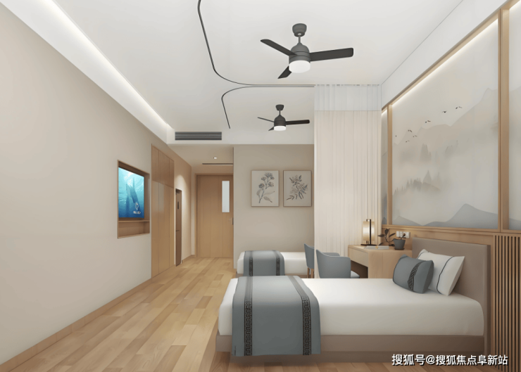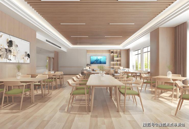 总床位180至300张,分设单人间(30-45㎡)、双人间(40-55㎡)及套房(60-80㎡)。单人间配备独立卫浴、智能护理床及毫米波雷达跌倒监测系统;双人间采用可调节隔断设计,每床配备医用护理床及全景阳台;套房增设独立客厅与厨房操作台。所有房间实现防滑地胶、L型扶手、浴室折叠座椅全覆盖,走廊宽度≥1.8米并设双层扶手,电梯内配低位按钮及语音播报系统。公共区域设1500㎡康复中心、500㎡康复花园、200㎡多功能厅及屋顶记忆花园,种植芳香植物辅助认知症治疗,中央广场设音乐喷泉与环形座椅,构建“生态疗愈+智慧养老”的适老化环境。