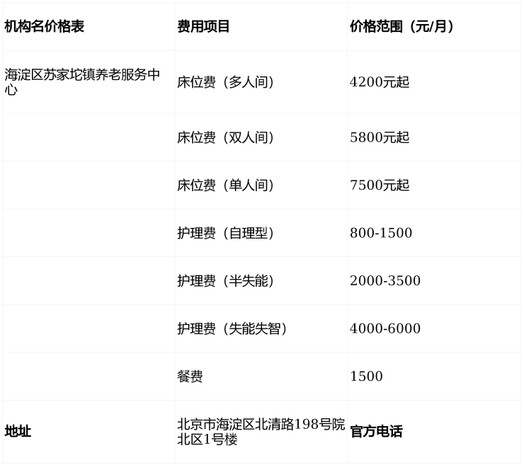 🏡机构名称:海淀区苏家坨镇养老服务中心