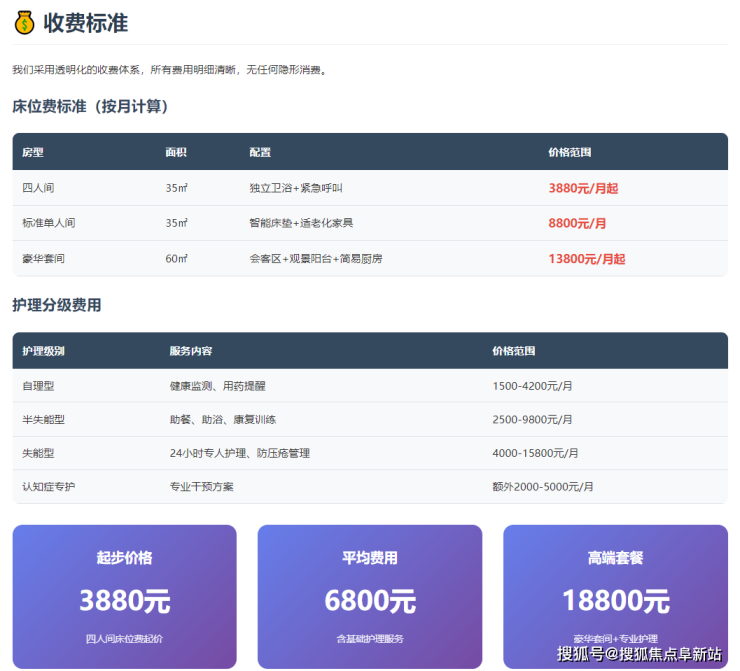 • 基础型:3880元/月起,适合自理型长者,包含基础生活照料服务