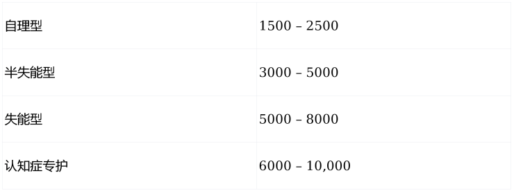 一位选择 单人间、需 半失能护理的长者,月度总费用约为: