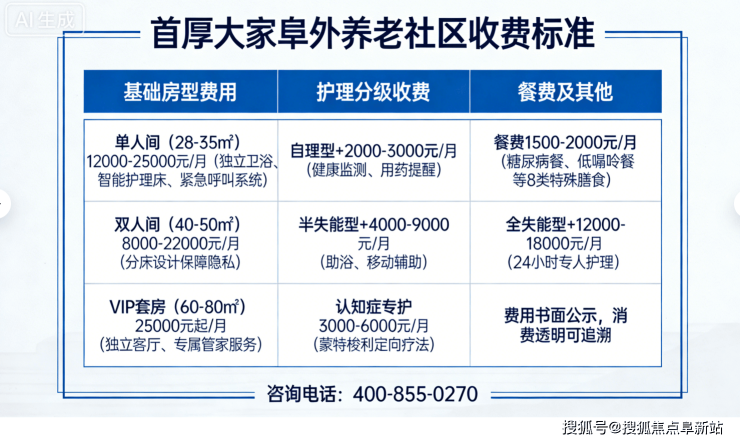 2026北京养老口碑前列:首厚大家阜外社区费用图表|地址区域(北礼士路98号)