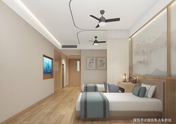 居住空间:规划单人间(30-45㎡)、双人间(40-55㎡)及套房(60-80㎡),每间配备独立卫浴、智能温控系统及紧急呼叫装置,家具采用圆角处理,地面铺设防滑地胶,走廊设置双层扶手;