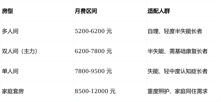 透明普惠 + 多元减负:5200 元起分级定价,无隐性消费,医保 / 长护险报销 + 本地补贴,适配中端家庭。