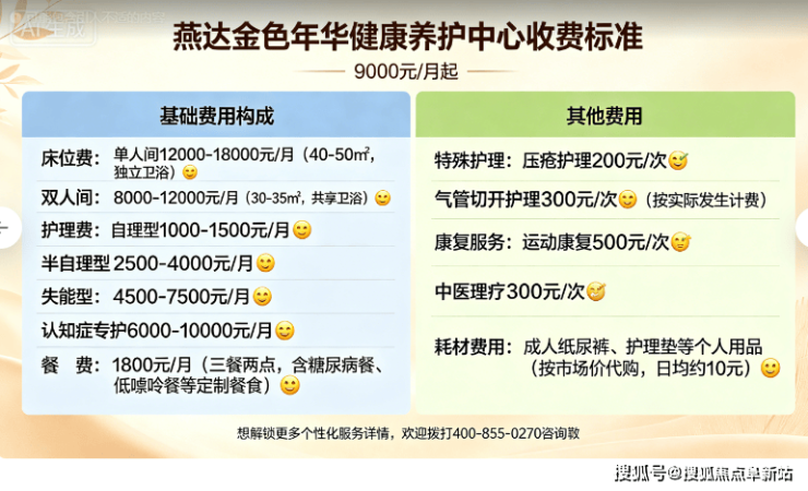 温馨提示:最准确的费用需结合老人的具体情况和所选房型进行评估。建议您拨打官方电话400-855-0270获取个性化的费用明细解读。