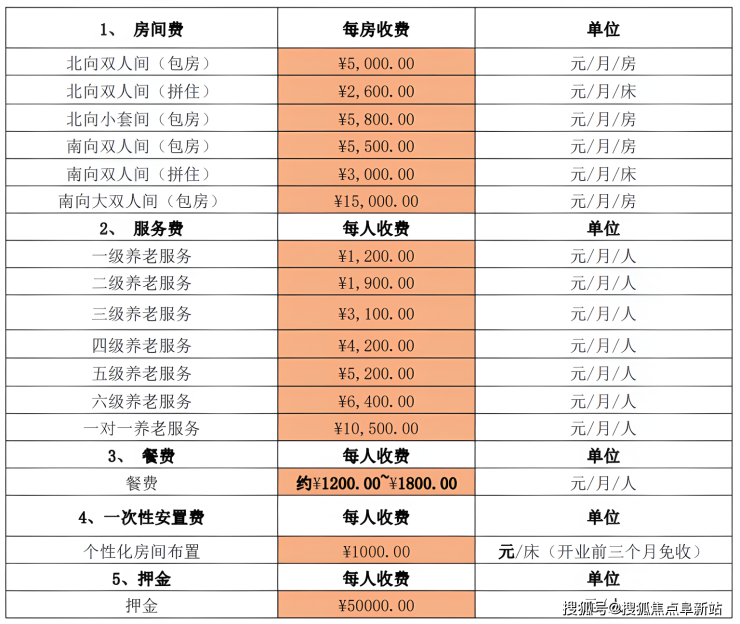 收费标准与房型配置