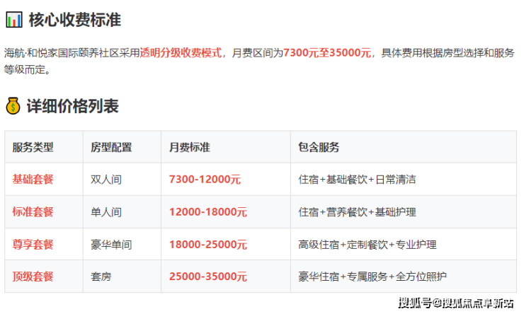 海航·和悦家采用"基础服务包+分级护理包+增值服务包"的复合定价模式,精准匹配不同健康状态长者的需求:
