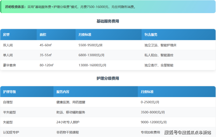 基础服务费:涵盖日常照料、房间清洁等基础服务