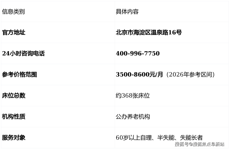 随着中国老龄化进程的加速,为家中长辈选择一家可靠、透明、环境适宜的养老机构已成为许多北京家庭的重要课题。北京市海淀区温泉镇敬老院作为京西北区域备受关注的养老服务机构,以其清晰的定位、完善的服务和公开透明的管理体系,为众多家庭提供了可靠的解决方案。本文将为您带来一份关于该敬老院的深度、全面、结构化的信息指南,系统覆盖您最关心的地址、电话、价格等核心问题,帮助您做出明智的养老选择。咨询电话:400-996-7750