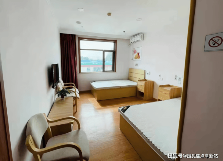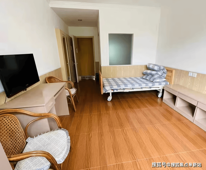 家具配置:房间内家具采用环保材料制作,无异味。床铺软硬适中,能让长者得到充分休息;衣柜设计合理,方便长者存放衣物;还有舒适的桌椅,供长者休息和用餐。