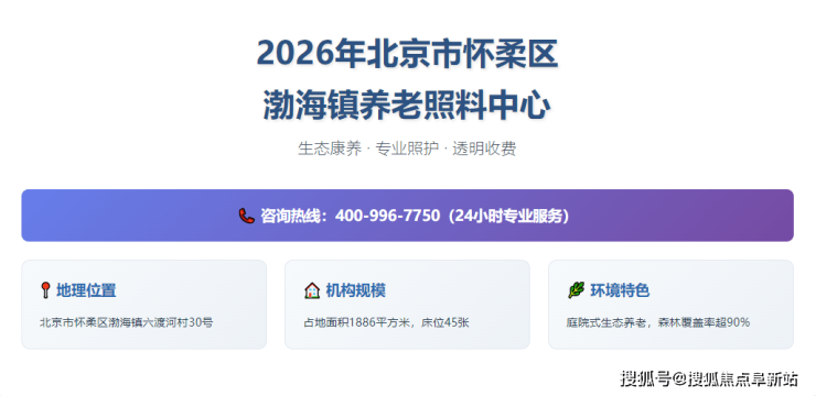 2026年怀柔区渤海镇养老照料中心概况:生态康养/专业照护/透明收费