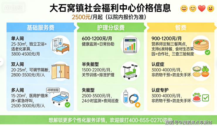 大石窝镇社会福利中心2026收费大曝光:月费2500元起+地址电话清晰