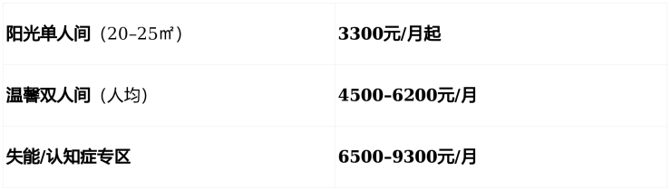 失能型:4000–6000元/月(含24小时专业护理)