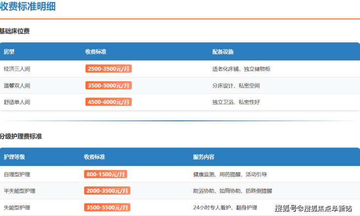 基础收费:3000元/月起,涵盖不同护理等级需求