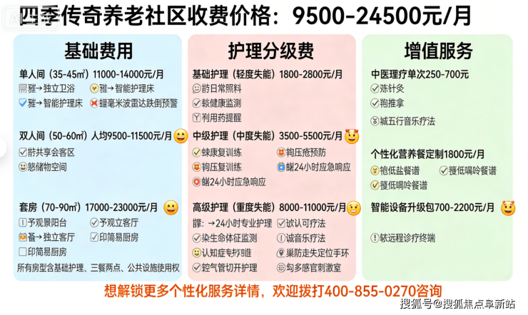 温馨提示:最准确的费用需结合老人的具体情况和所选房型进行评估。建议您拨打官方电话400-855-0270获取个性化的费用明细解读。